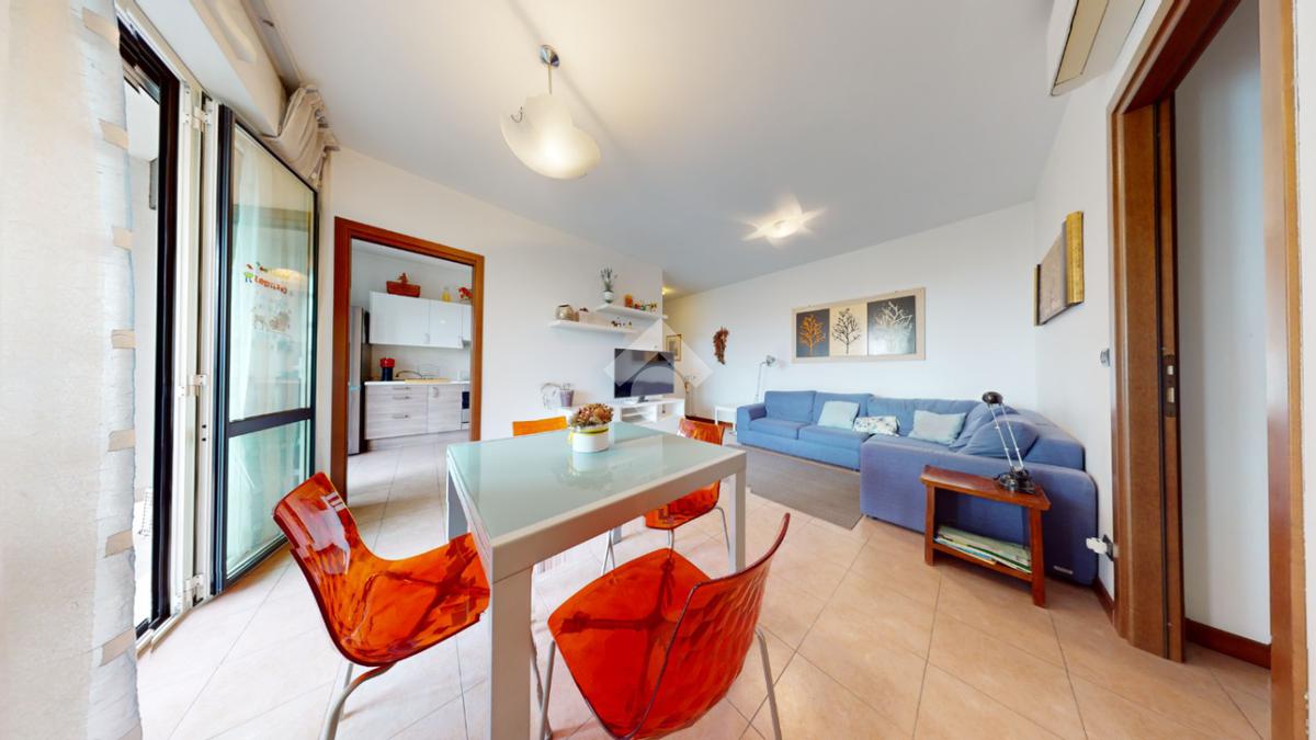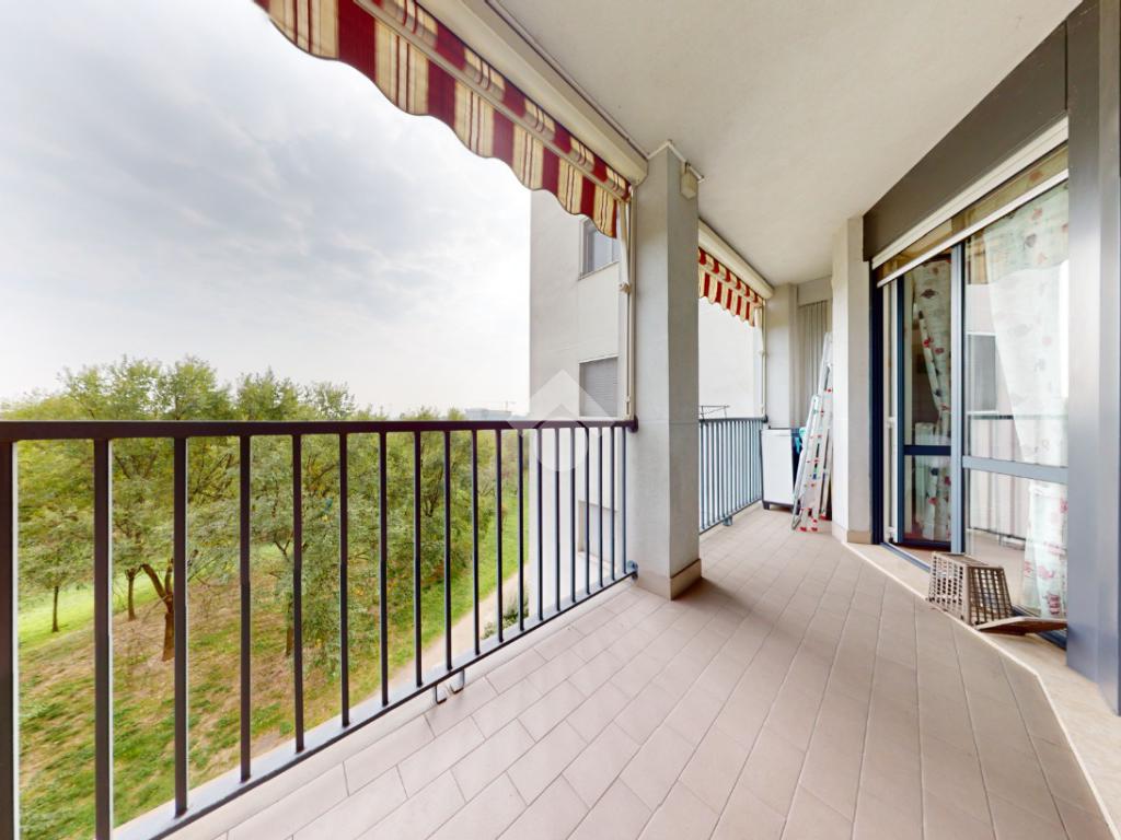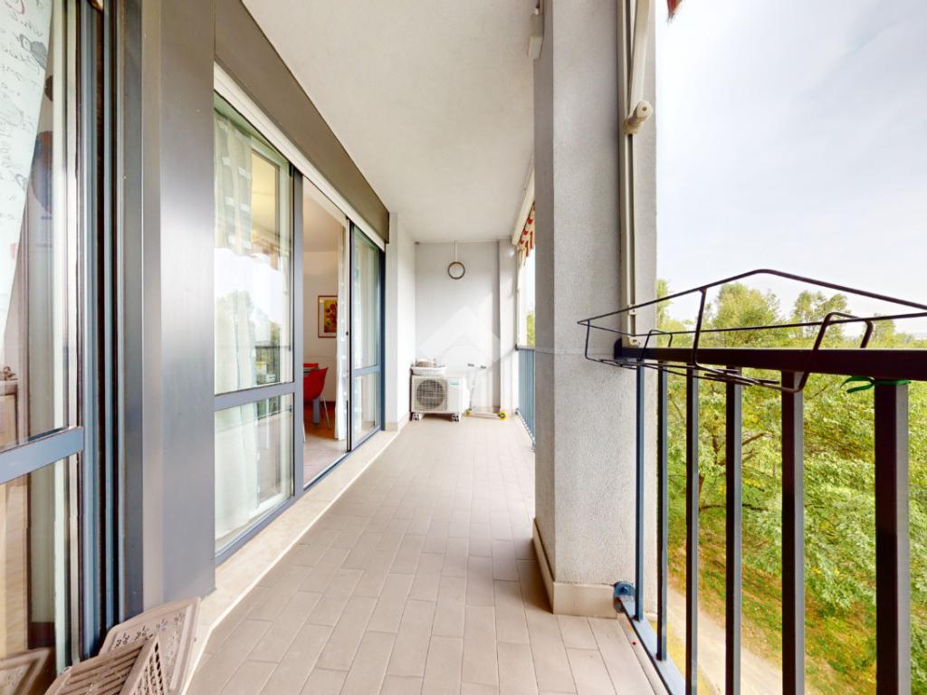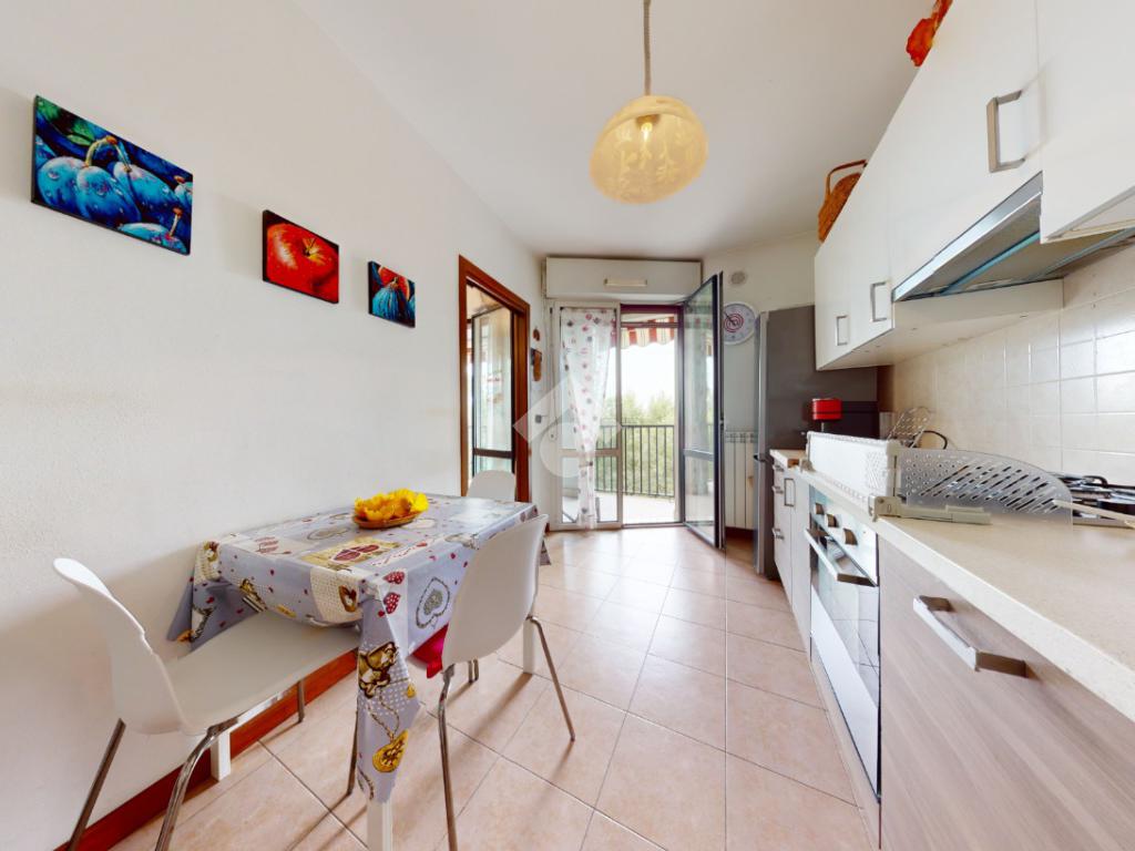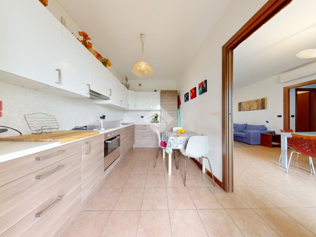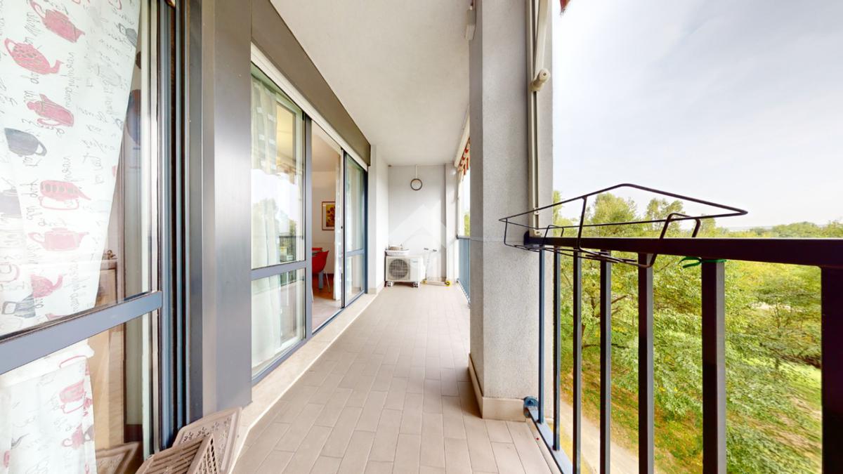 La cucina è separata. Da qui si accede al terrazzo vivibile comunicante con la zona giorno, con affaccio sul parco della Lambretta.