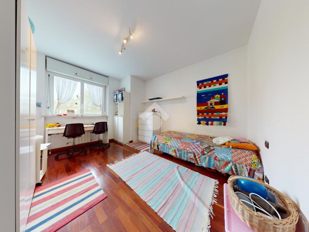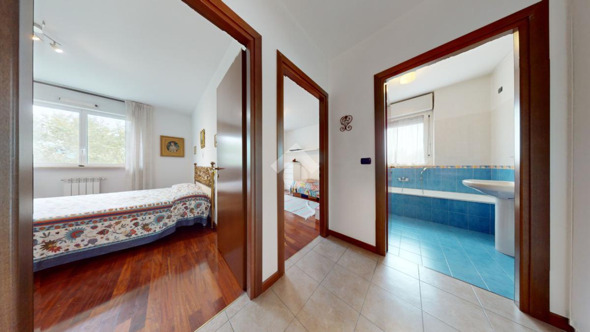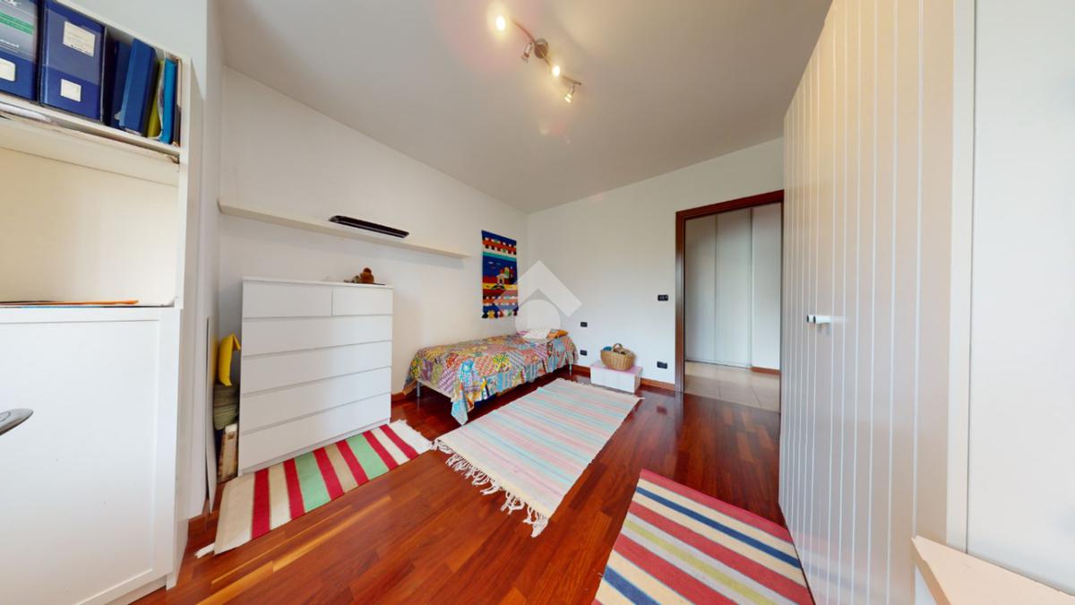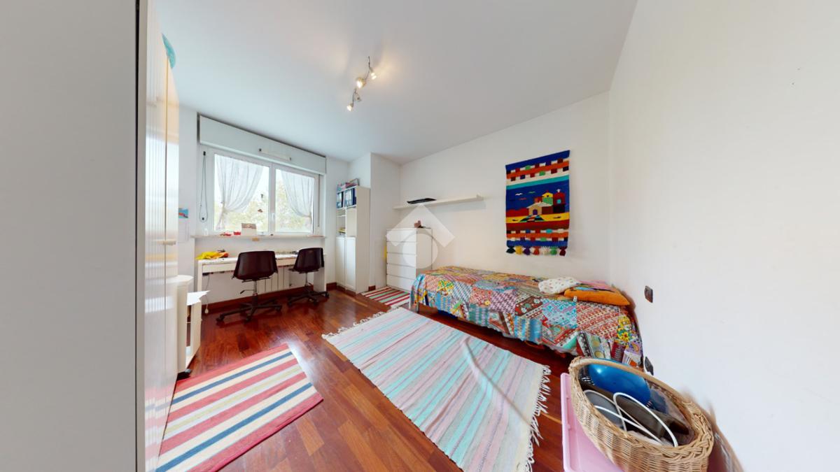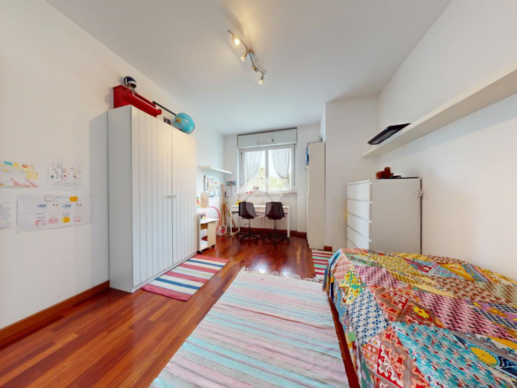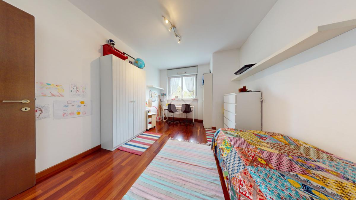 La seconda camera, anch'essa spaziosa, al momento ospita un letto singolo, guardaroba e scrivania. Sono presenti due bagni: il primo è finestrato e dotato di vasca da bagno; nel secondo è presente il box doccia.