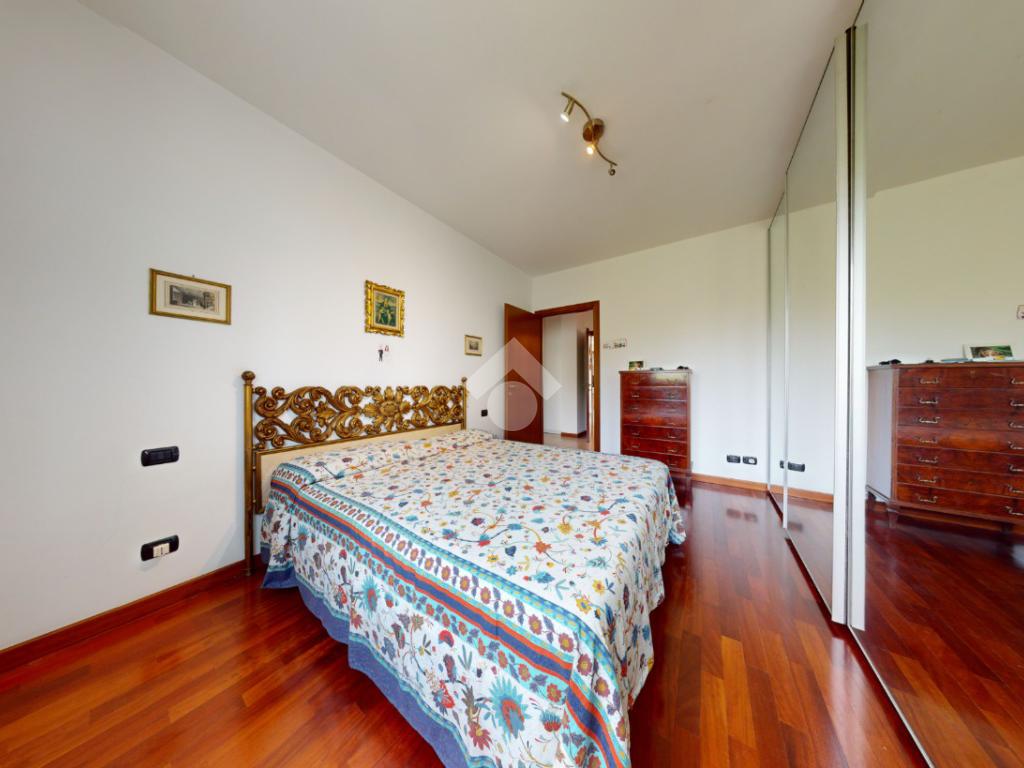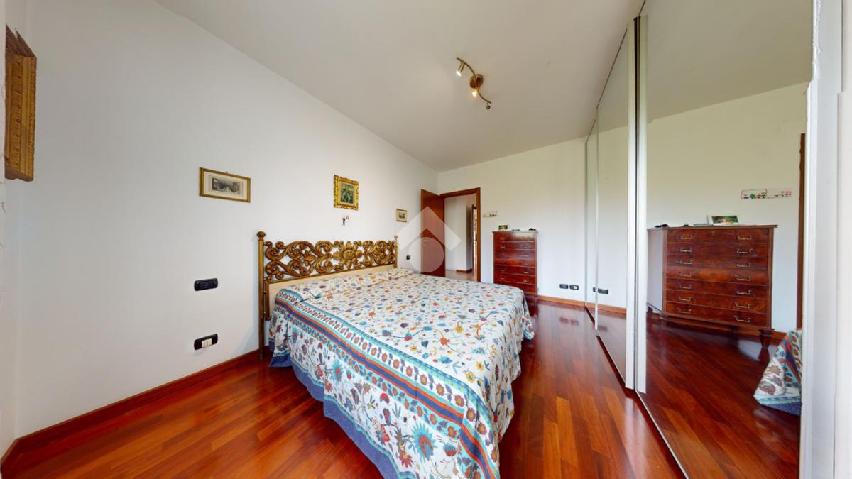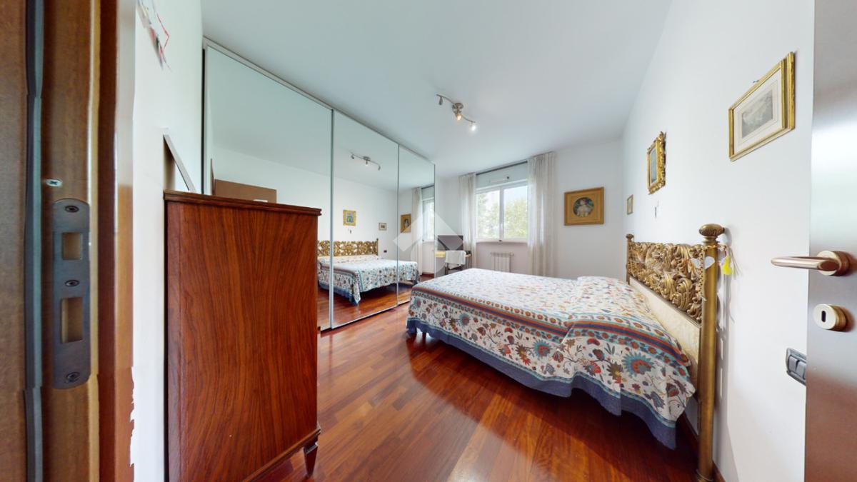 La camera matrimoniale è dotata di letto, armadio guardaroba con ante a specchio e cassettiera.