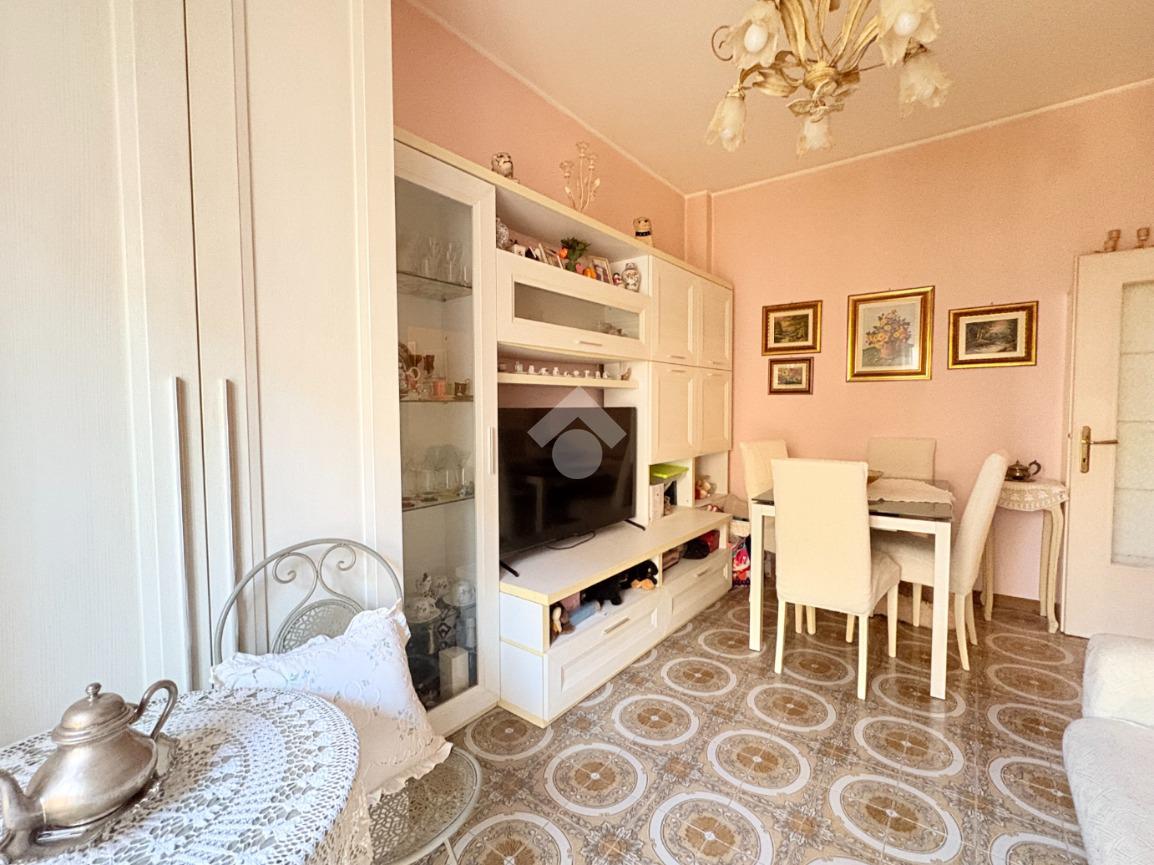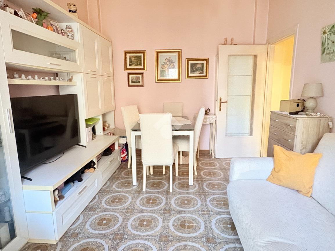 Il soggiorno è accogliente e comprende la zona tv con il relativo arredo, il divano e un ulteriore tavolo da pranzo. In questa stanza si accede al lungo balcone che si estende per l'intera lunghezza dell'appartamento.