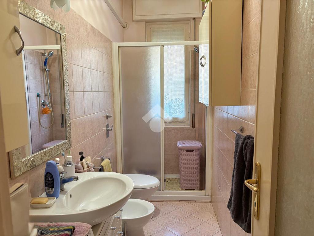 Il bagno è dotato di tutti gli elementi, di ampio box doccia e di finestra.