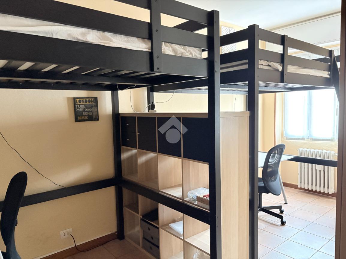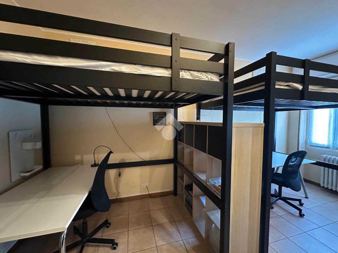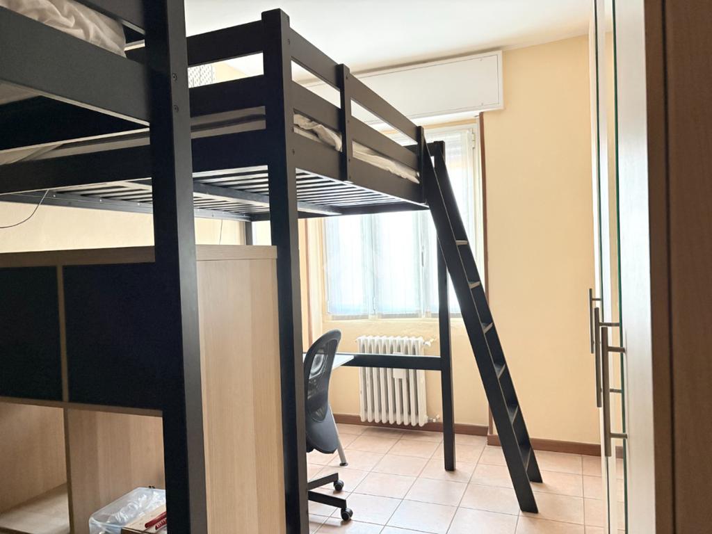 La camera da letto è di grande dimensione ed è stata arredata in maniera funzionale per due studenti, con letti sopraelevati e scrivanie sottostanti. A completare l'arredo trova posto un armadio guardaroba.