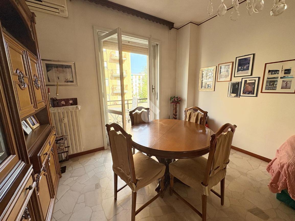 L'appartamento di circa 100 mq, posto ad un piano intermedio, è servito da ascensore e portineria, garantendo comfort e sicurezza.