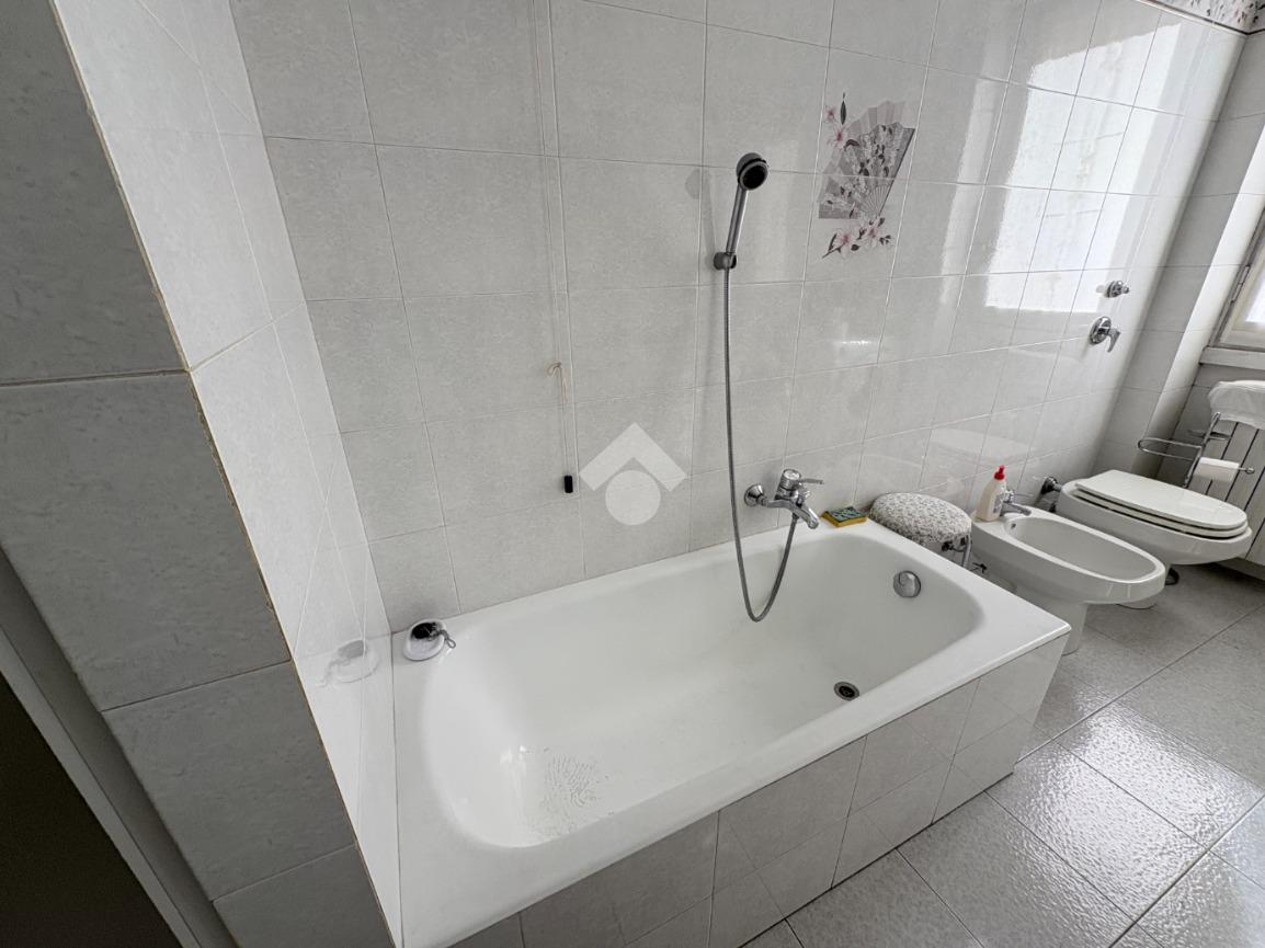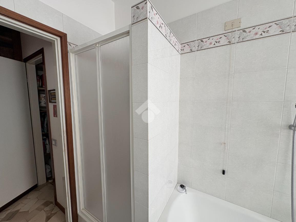 Il bagno, dotato di finestra, offre sia doccia che vasca, combinando praticità e relax.