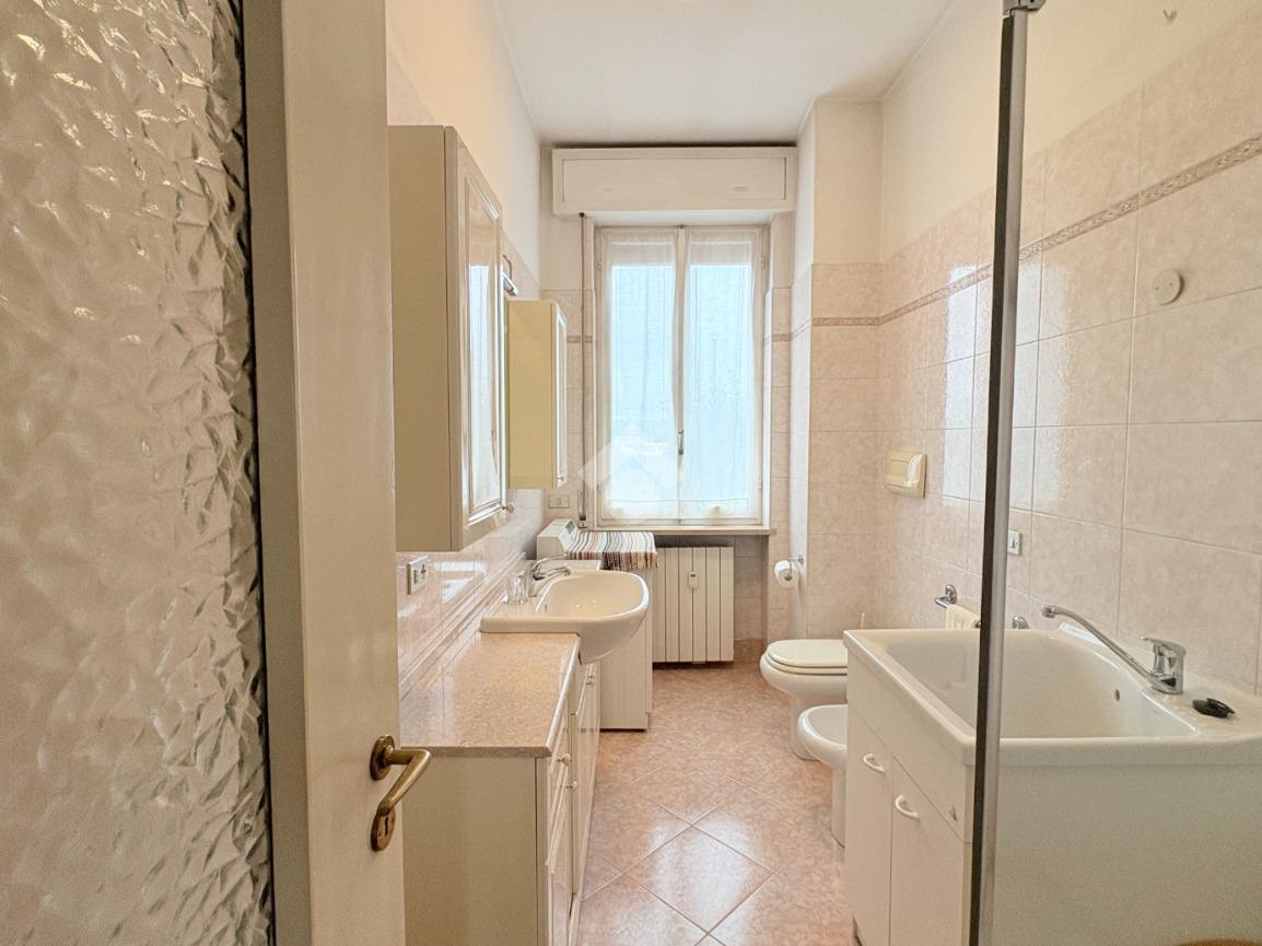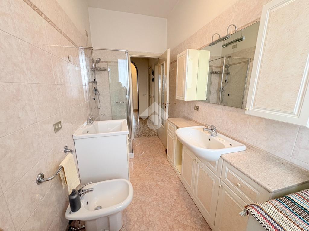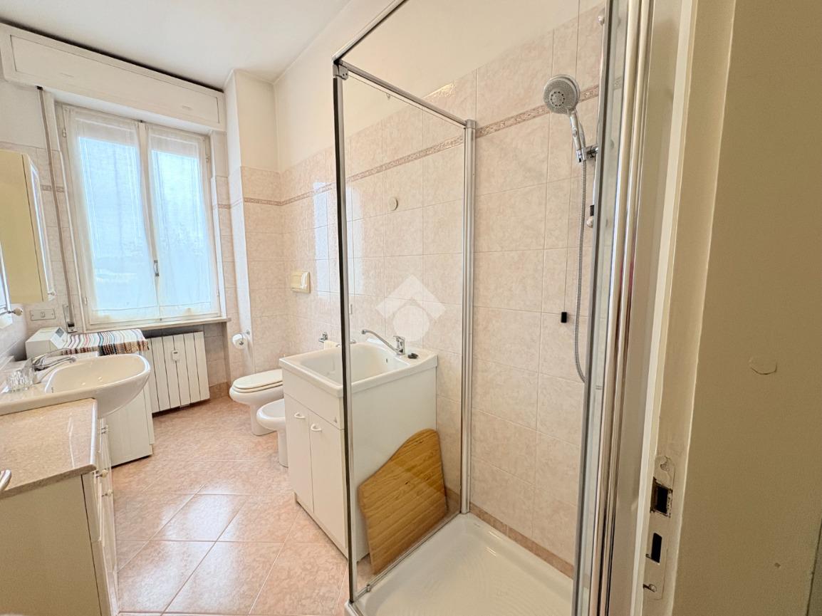 Il bagno è dotato di tutti gli elementi, di una comoda doccia e persino di un mobile lavatoio.