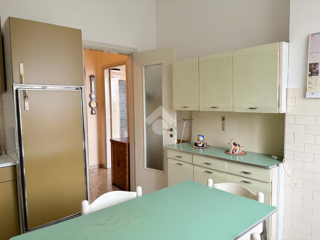 Sulla destra troviamo la cucina abitabile, di pianta quadrata, luminosa e con affaccio silenzioso.