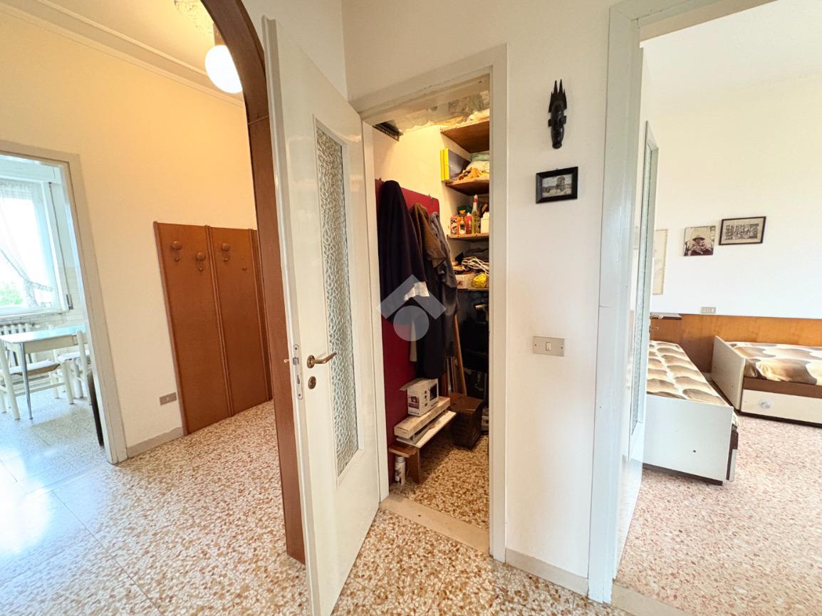 La parte del disimpegno che conduce verso la zona notte divide le due camere da letto, il bagno e il ripostiglio.