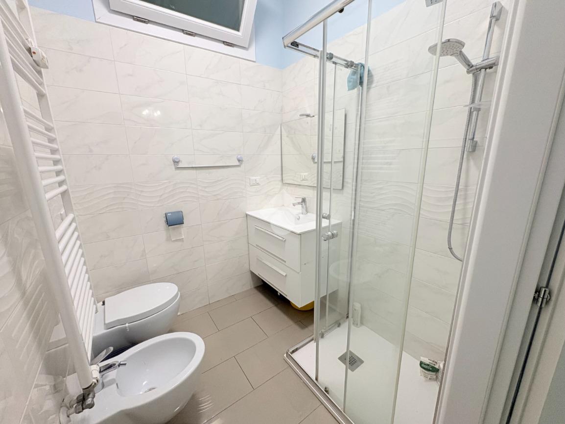 La camera da letto matrimoniale è ampia e dotata di bagno pertinenziale con box doccia e finestra.