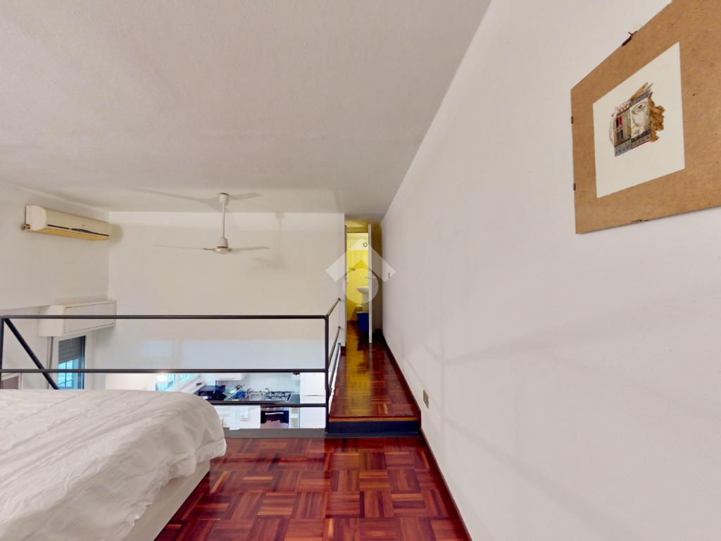 Salendo al livello superiore, si accede alla zona notte soppalcata, che garantisce privacy e comfort. Qui si trova un primo ambiente con il letto matrimoniale e cabina armadio, una seconda stanza e un secondo bagno, una comodità aggiuntiva che arricchisce l'abitazione.