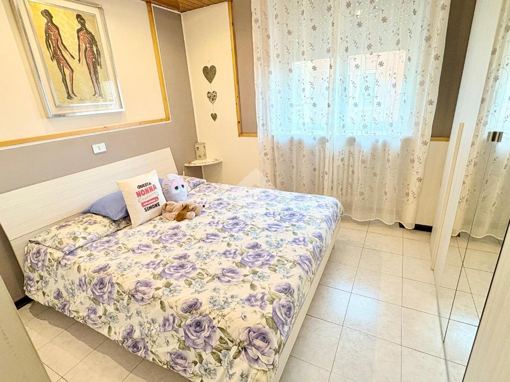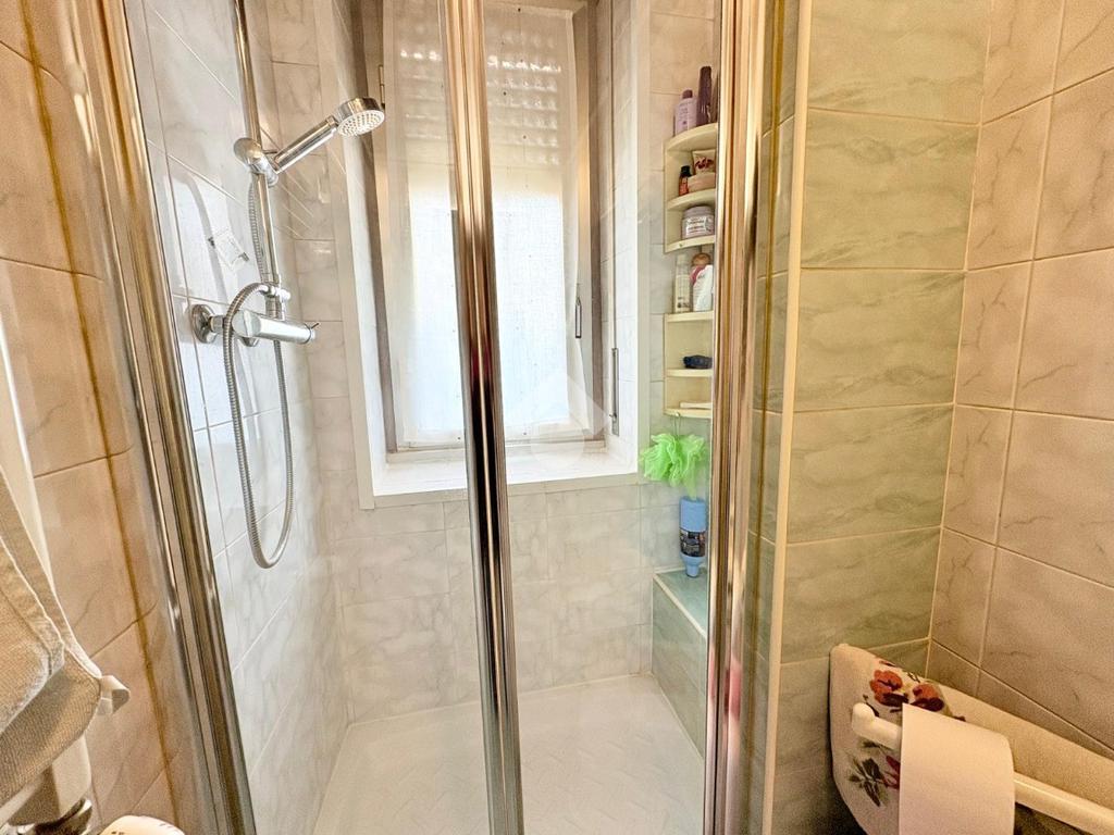 Un ulteriore disimpegno arredato separa il bagno dotato di finestra e comoda doccia dalla camera matrimoniale di dimensioni generose.