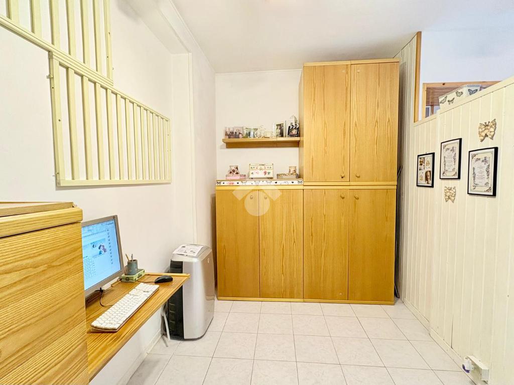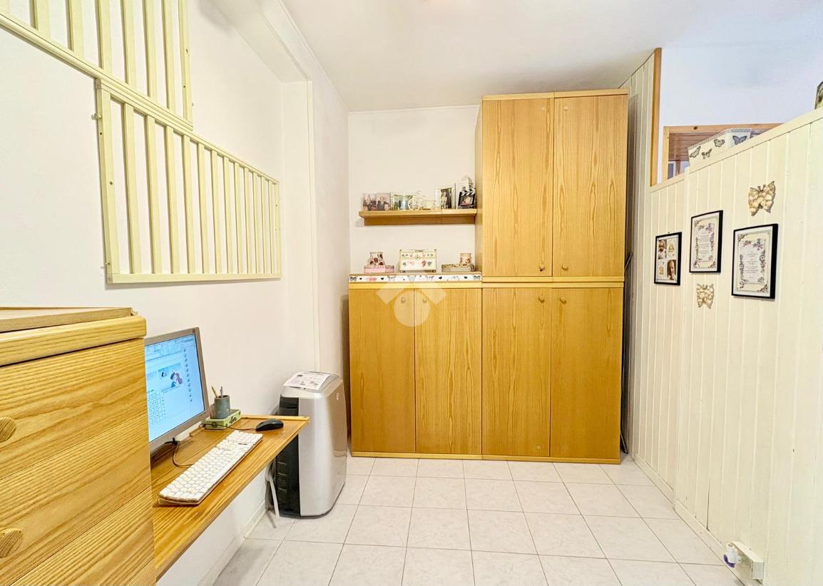 Attualmente è stata posta al suo interno una parete divisoria che ha permesso di ricavare una zona studio/ospiti, ma che potrebbe ospitare una generosa cabina armadio.