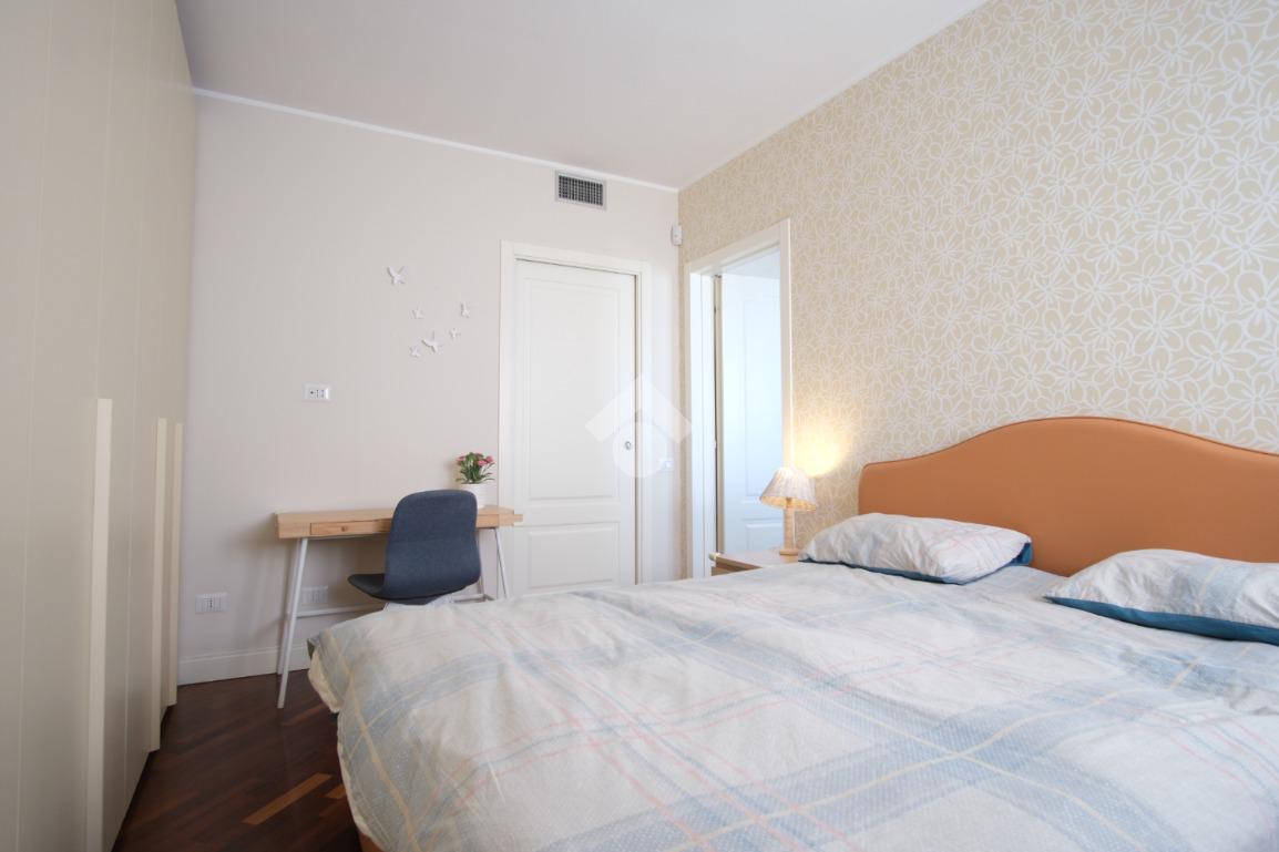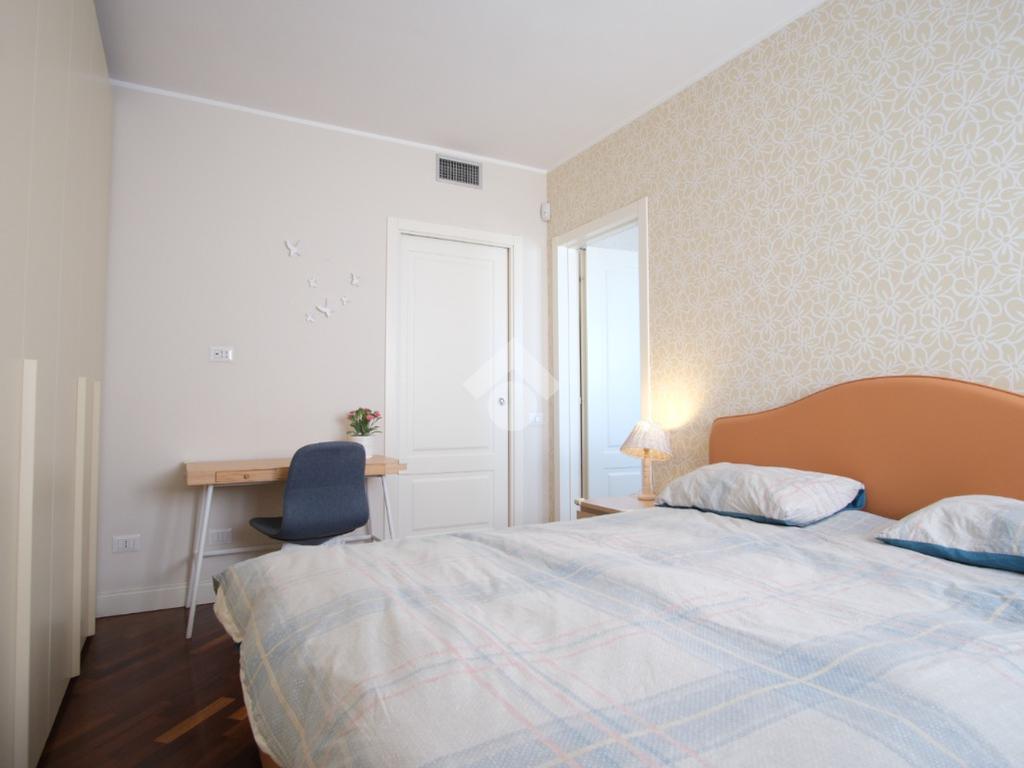 La camera matrimoniale è anch'essa molto luminosa e tutti gli arredi trovano comodamente posto. Il bagno en suite, con finestra e vasca, è accessibile direttamente dalla stanza donando ulteriore privacy e comfort.