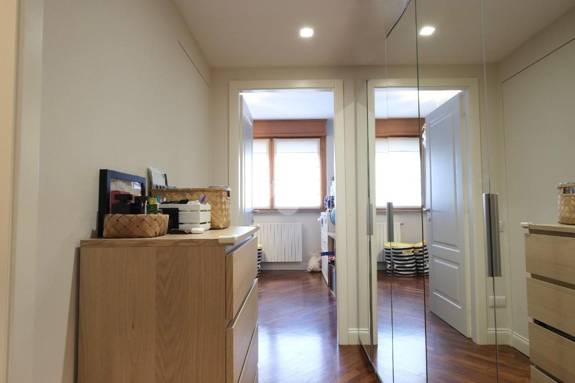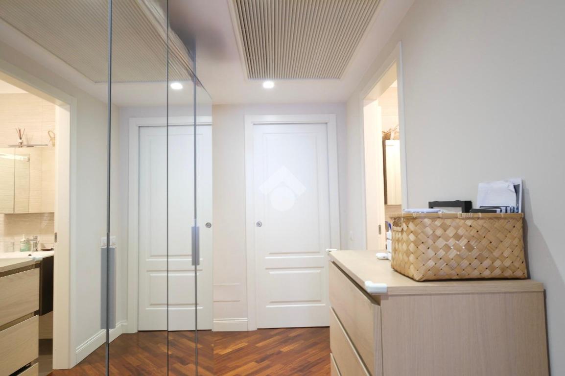 All'interno del disimpegno trova posto anche un ampio e molto utile ripostiglio che funge anche da zona lavanderia. La cura dei dettagli si evince anche dall'utilizzo della porta rasomuro che lo rende meno visibile donando continuità visiva allo spazio.
